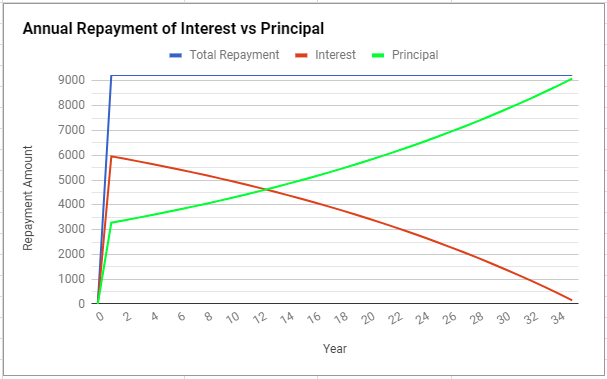 Amount paid off loan = Monthly Repayment - Interest Payable