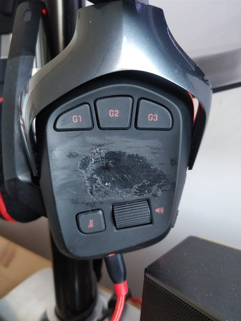 Motivated by this success, I turned to my headphones…turned out this was a really bad idea. Acetone dissolves plastic, which I should’ve thought of if I’d paused for just one second to consider the plan. I avoided doing anything but cosmetic damage by cleaning it off quickly, but the result…isn’t pretty.