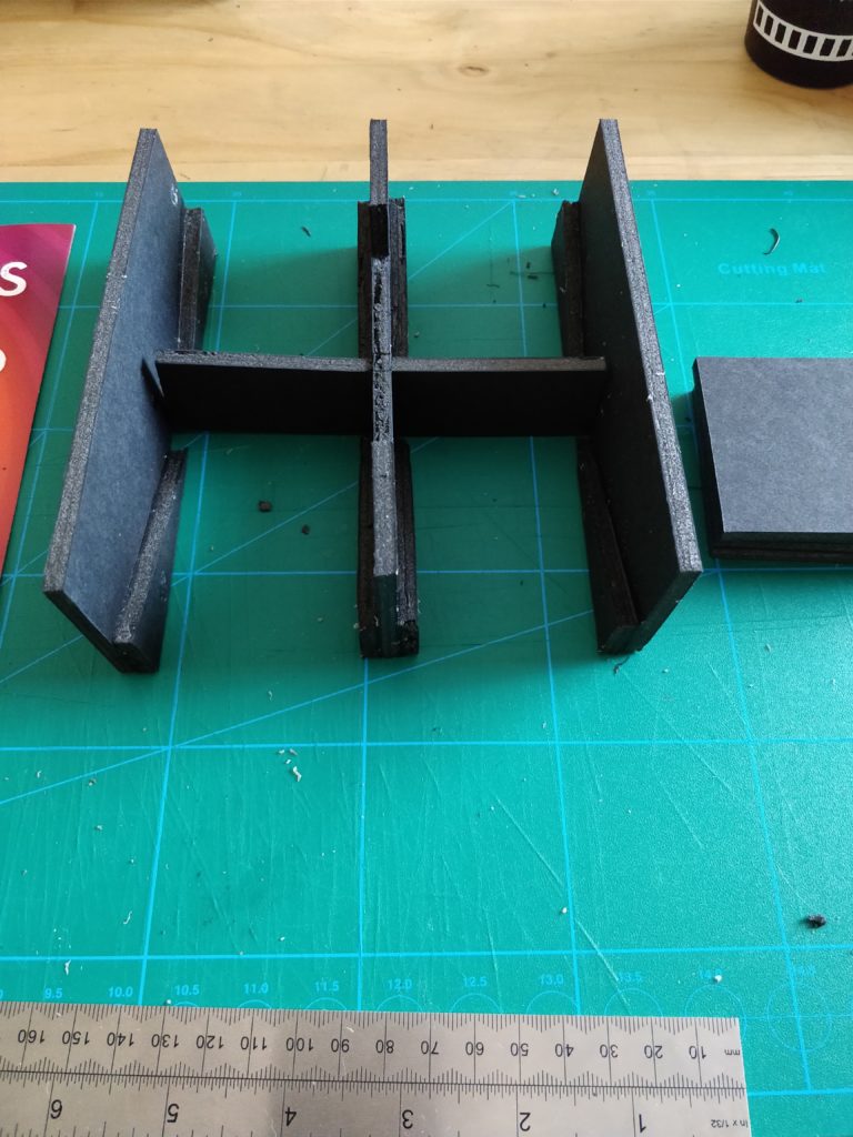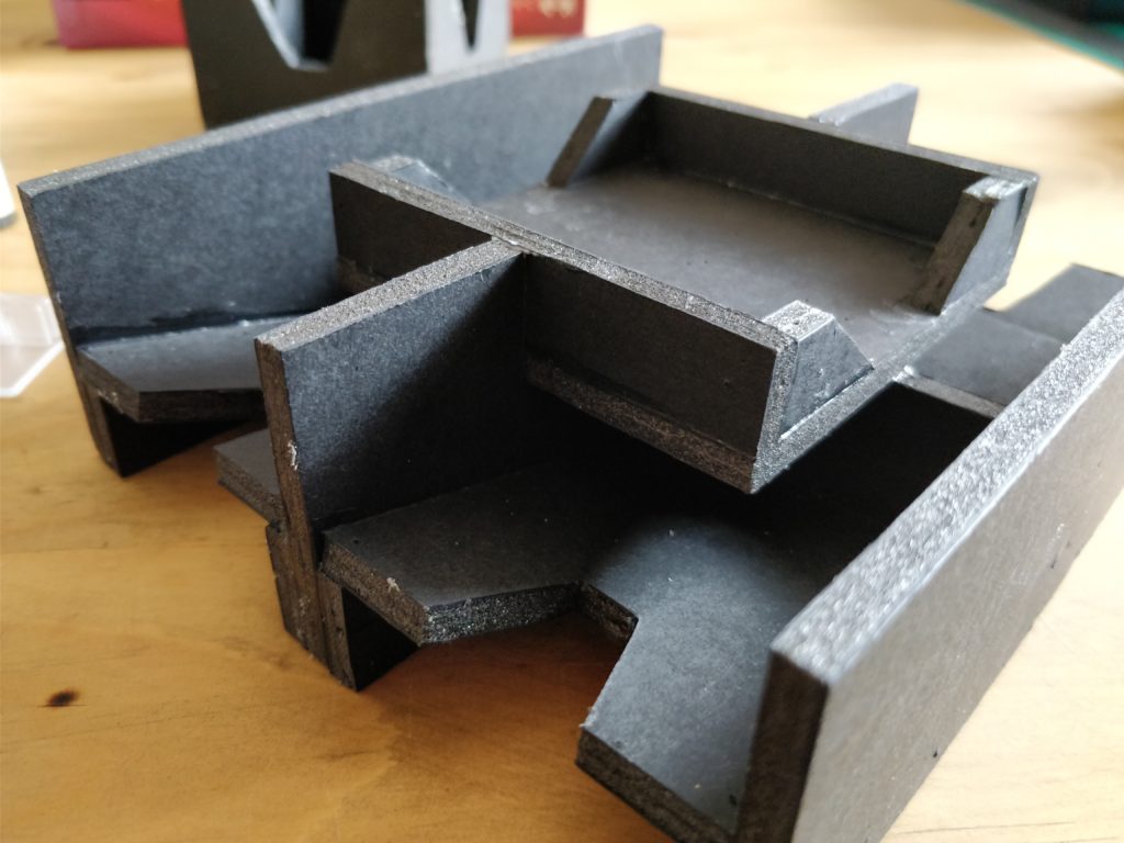 Inspiration drawn from Gonzalo Viqueira over on Boardgamegeek. He provided plans and measurements too which…I didn’t even look at apart from seeing that he cuts angled notches to support the floors, which, after Avalon, I had no intention of doing!