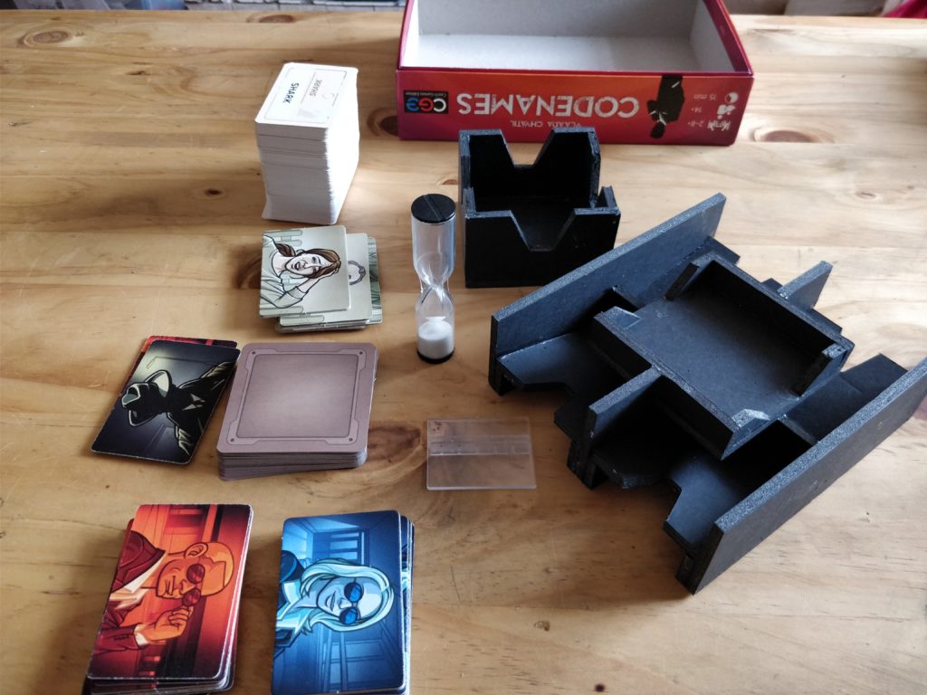 The big strength about this insert is that it reduces setup time to…nearly zero. You take the card box and main insert out of the box, plonk them in front of the spymasters and lay out the cards. Makes for nice quick cleaning up too.